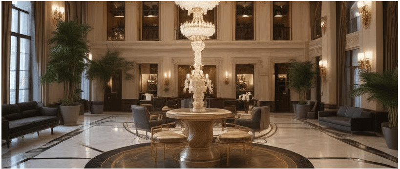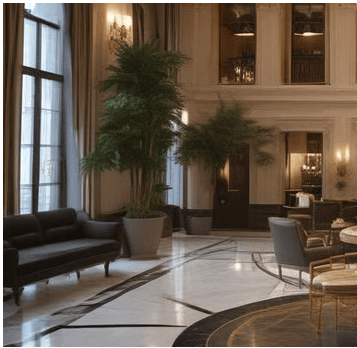 Sofa dan Kursi yang Nyaman: Pilih sofa dan kursi dengan desain yang elegan dan bahan yang berkualitas. Pastikan tamu merasa nyaman saat menunggu atau bersantai di lobby.